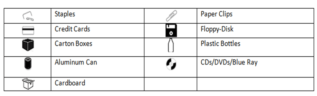 | Can Shred | Staples, Paper Clips, Credit Cards, Floppy-Disk, CDs/DVDs/