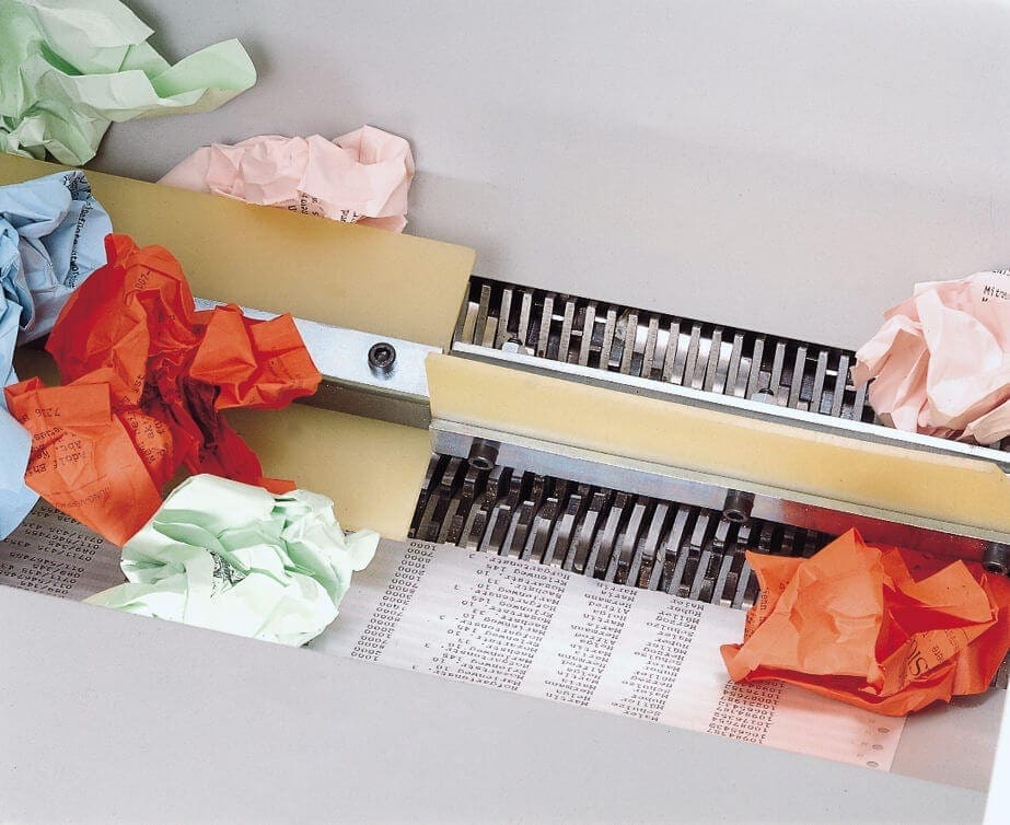 The Destroyit 4605 Cross Cut High Capacity Paper Crusher has great shredding capability, able to shred bulk material, such as crumpled paper and hardbound documents, into particles as small as 3/32 x 5/8 inches.